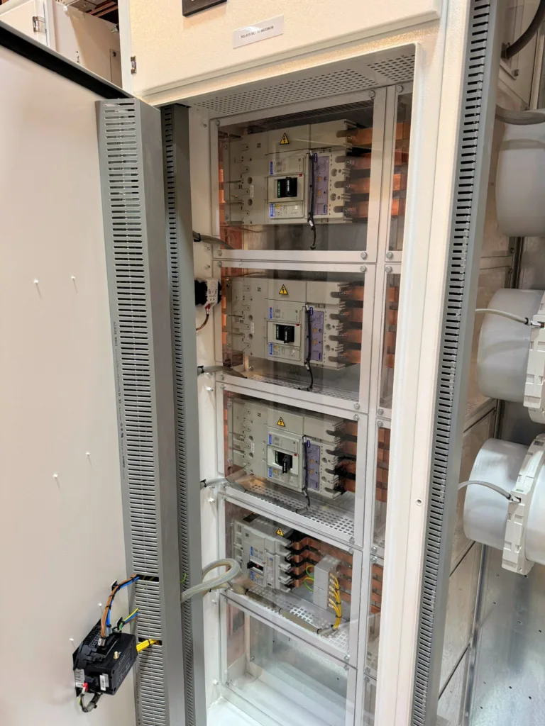 We have successfully completed another switchboard for one of our bus charging depot contracts. Finished in the client’s specified colour scheme and fitted with custom vinyl logos, this unit meets both technical and branding requirements, delivering a clean, professional result ready for installation.